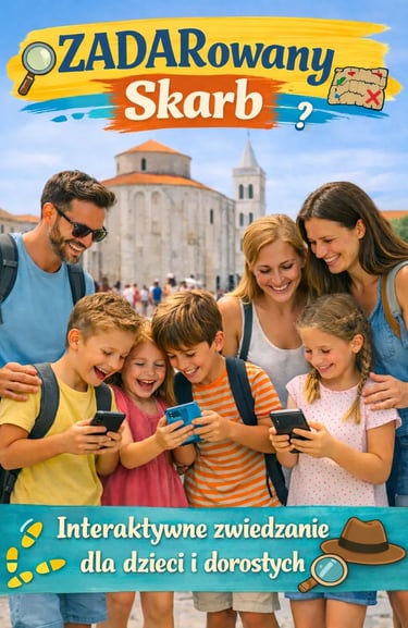 Witaj, Odkrywco! Podczas wycieczki będziesz rozwiązywać zagadki, szukać symboli i zbierać części skarbu. Po każdym przystanku zdobędziesz nowy element skarbu!